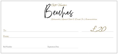 Redeemable against food, drink or accommodation at The Beeches Hotel. Vouchers are valid for 12 months from the date of purchase. Vouchers must be used against one transaction only and change cannot be given.