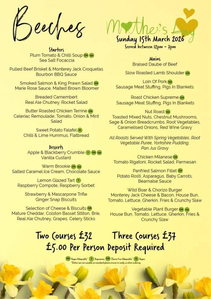 Make this Mother’s Day truly special by bringing the whole family together at The Beeches Hotel in Nottingham. Whether you’re celebrating Mum, Grandma, or any mother figure, treat them to a wonderful dining experience in our welcoming restaurant.